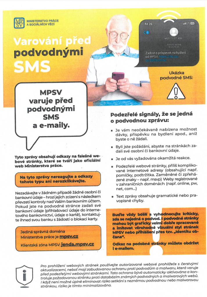 Ministerstvo práce a sociálních věcí varuje všechny občany před podvodnými SMS!