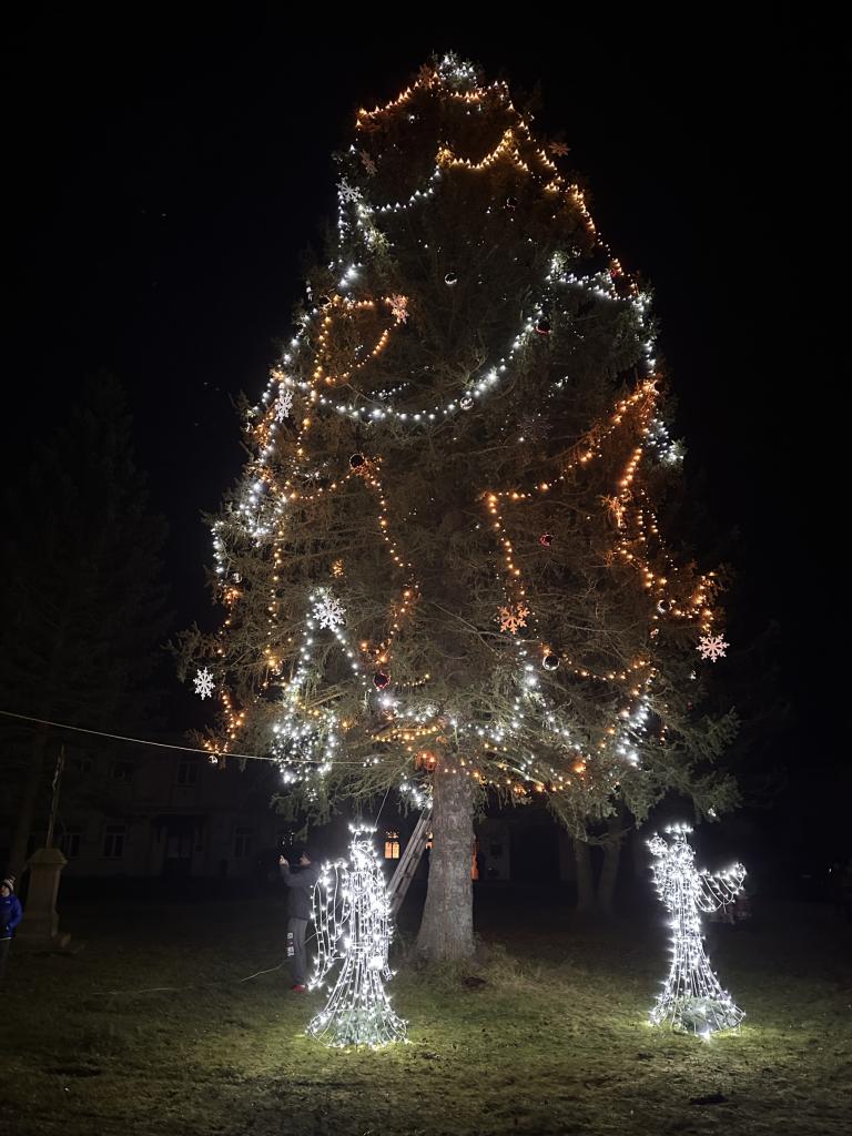Fotografie ze slavnostního rozsvěcováni vánočního stromu, které proběhlo 1.12.2024. Letošní novinkou jsou světelní andělé z dílny Slévárna Svobodovi. Pěvecký doprovod dětí ze 4. a 5. třídy ZŠ a MŠ v Rapšachu pod vedením paní Mgr. Jany Šikrové. Děkujeme!